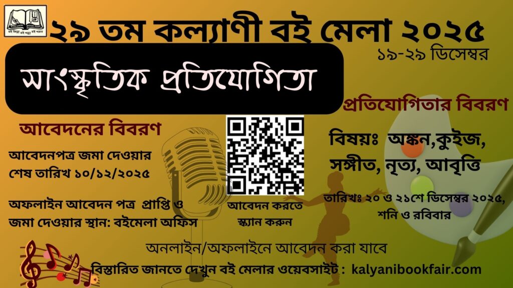 সাংস্কৃতিক প্রতিযোগিতা (Cultural Competition) Form Fillup 2025by ajoyNovember 13, 2025December 2, 2025 ২৯ তম কল্যাণী বই মেলার সাংস্কৃতিক প্রতিযোগিতার ফর্ম ফিলাপ শুরু হয়েছে। অনলাইন ফর্ম ও বিস্তারিত জানুন এই পোস্টে। অনলাইন ফর্ম – এর লিঙ্কঃ https://forms.gle/v9rBiAho9a8wBmiL6 Share this via Leave a Reply Cancel replyYour email address will not be published. Required fields are marked *Name * Email * Website Comment * Save my name, email, and website in this browser for the next time I comment.
